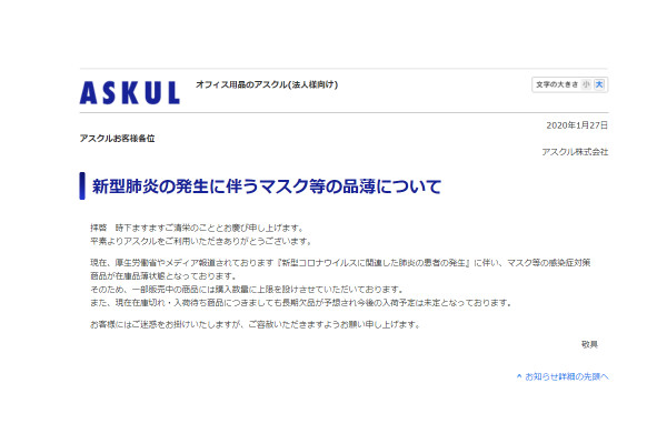 アスクルやカウネットでマスクが品薄に 新型コロナウイルスの影響で 通販通信ecmo