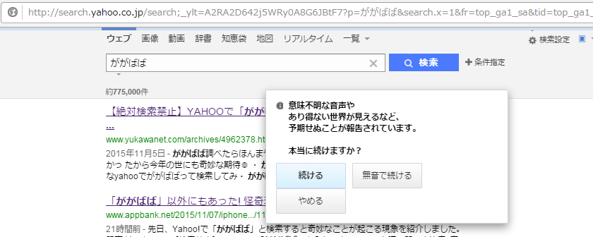 恐怖再び yahooで ががばば と検索してはいけない いいか絶対にyahooで ががばば と検索するなよ ロケットニュース24