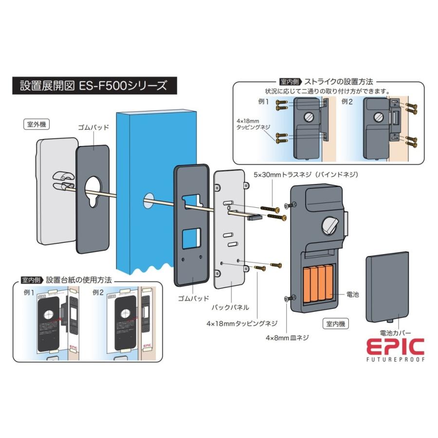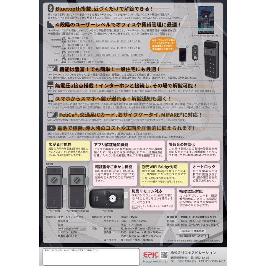 標準取付工事込 電子錠 後付け 電子鍵 オートロック 玄関 エピック epic es f300d 暗証番号 icカード 指紋認証 bluetooth アプリ 開き戸