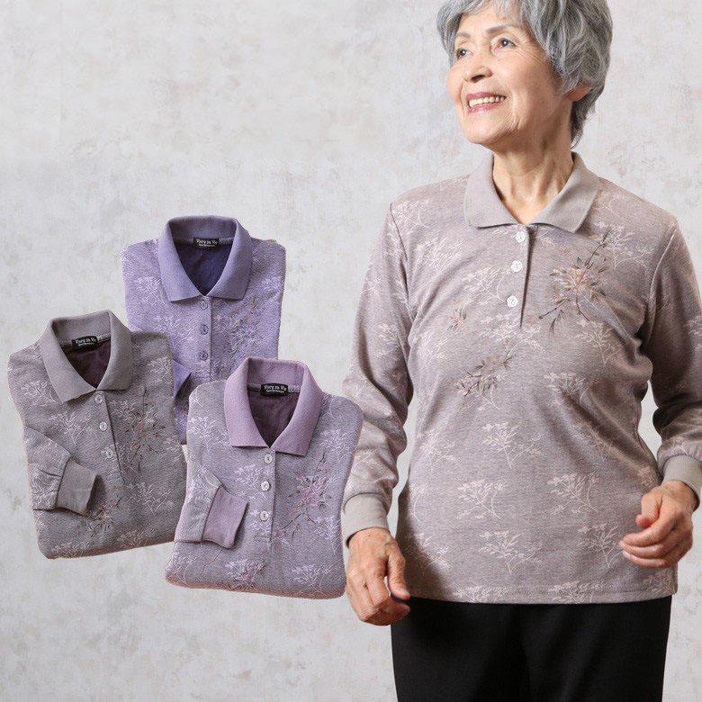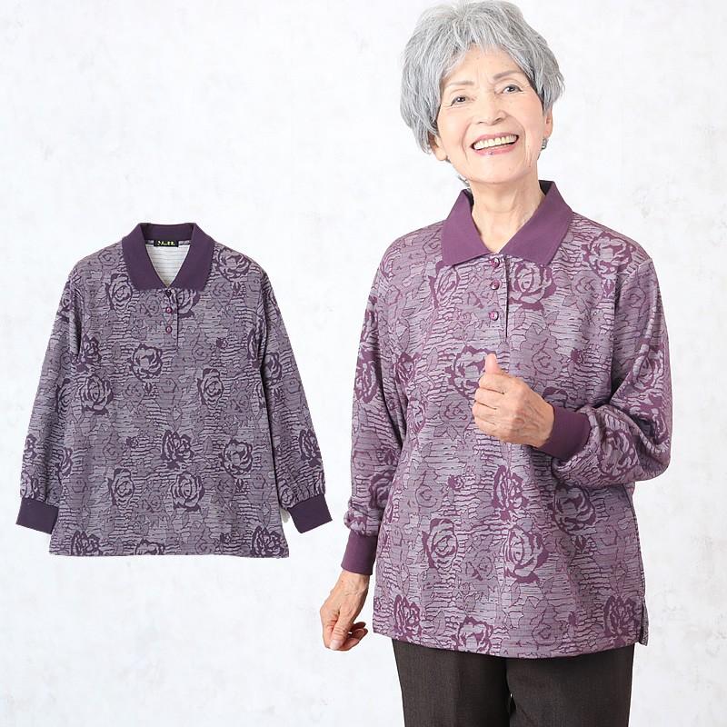 段染めジャカード花柄ポロシャツ シニアファッション レディース 80代 秋冬 70代 60代 ミセス おばあちゃん プレゼント 高齢者 誕生日 csfft2 0019 tcマート シニアファッション 通販 yahoo ショッピング