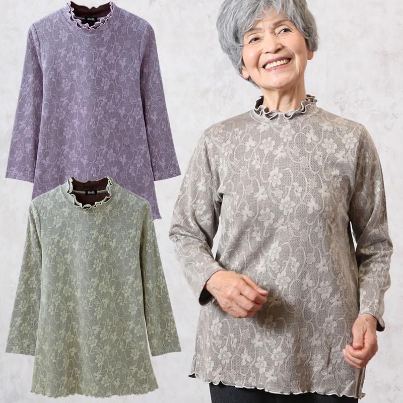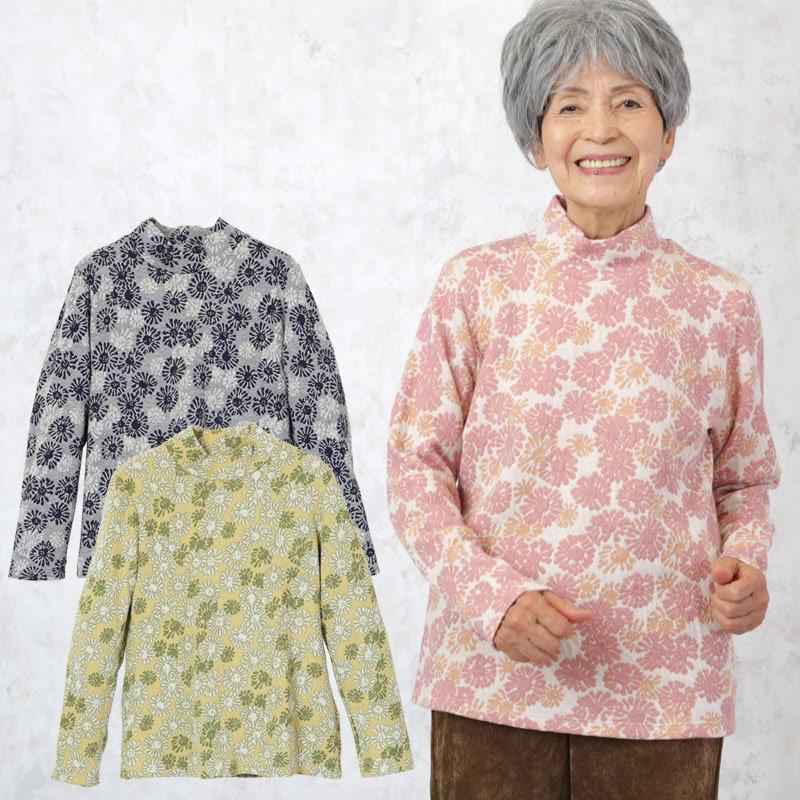 シニアファッション 80代 70代 60代 レディース 婦人服 高齢者 おばあちゃん 花柄ジャカードメローネックカットソー csfft6 0031 シニアファッションココわく 通販 yahoo ショッピング