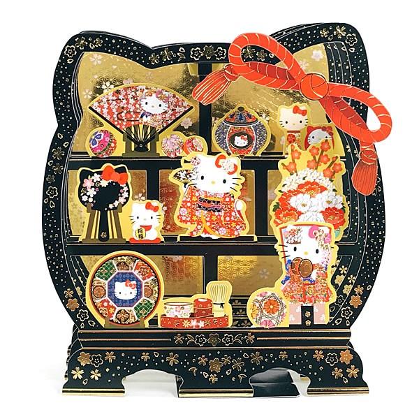 クリスマスカード 和風 海外向け サンリオ p7005 sx 01 キティ 丸棚 和小物 立体カード 多用途 christmas card グリー