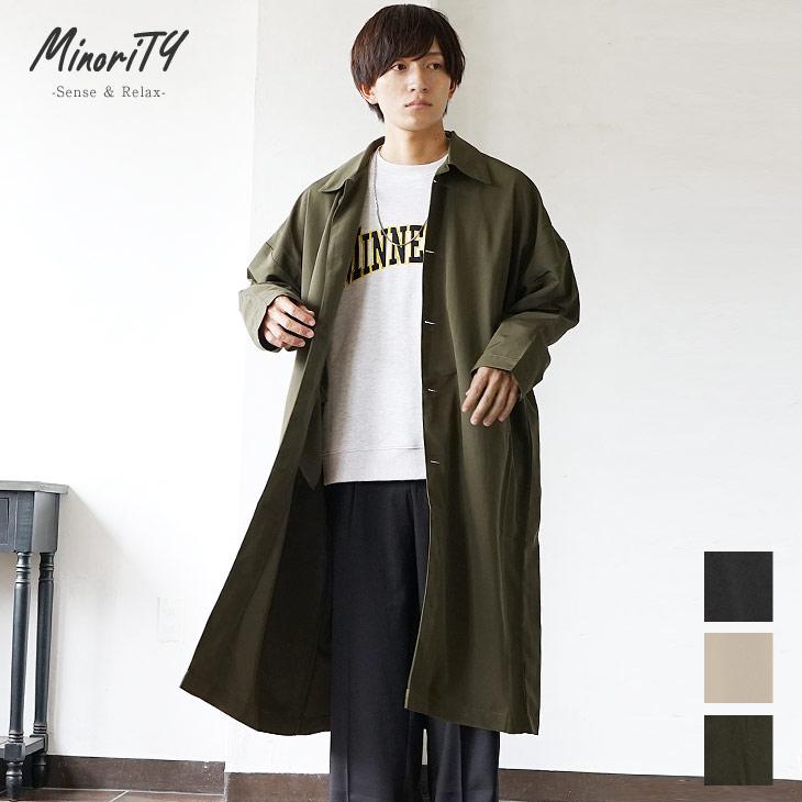 ステンカラーコート メンズ コート ステンカラー ロング丈 アウター ビッグサイズ ロングコート ビジネス コート ライトアウター ブラック 秋服 秋 冬服 秋冬 62636 minority yahoo 店 通販 yahoo ショッピング