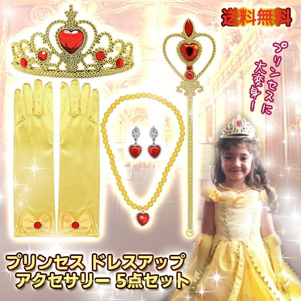 レビューを書いてメール便送料無料 プリンセス ドレスアップ アクセサリー 5点セット コスプレ イエロー ティアラ イヤリング ステッキ ベル 美女