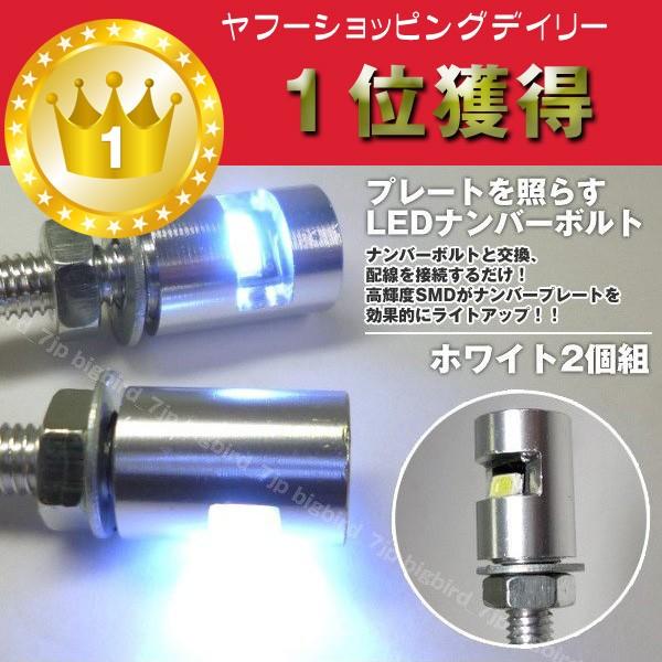 バイク ナンバー灯 ナンバーを照射 led内蔵ボルト 銀 直角照射 smd 白 m6