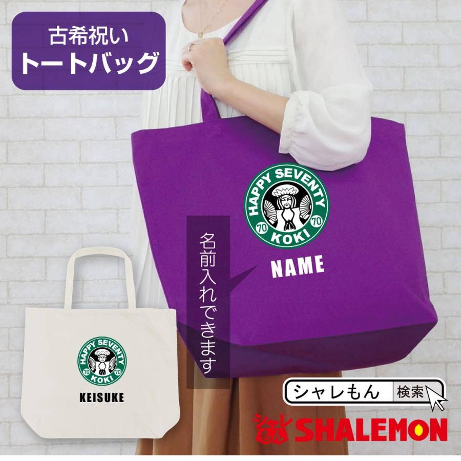 古希 お祝い プレゼント 母 父 名入れ 紫 大きな トートバッグ 選べるカラー トート古希カフェ風 70歳 エコバッグ キャンパス sltw baglpp kokicafe シャレもんヤフーショッピング店 通販 yahoo ショッピング