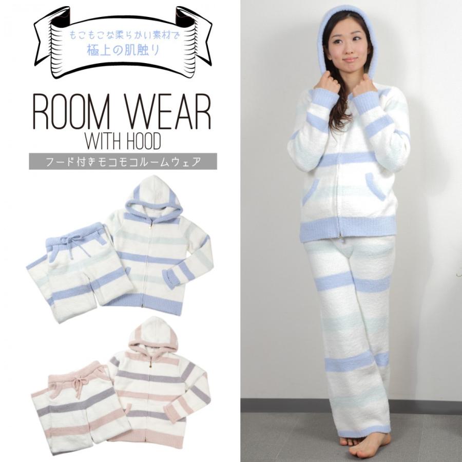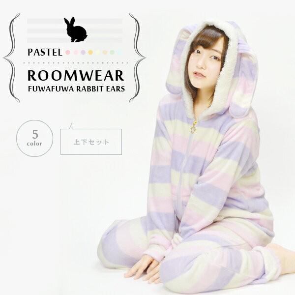 レディース うさ耳 パジャマ 上下セット 女性 マイクロファイバー 長袖 ボーダー パステル 耳付き あったか もこもこ ふわふわ 可愛い うさぎ f16 011 goods kobe ヤフーショップ 通販 yahoo ショッピング