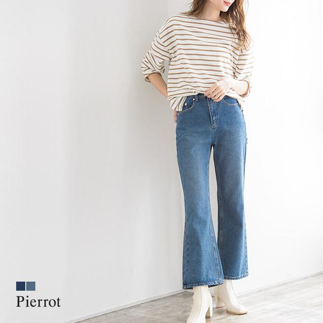 デニムパンツ フレア ジーンズ 綿100 美脚 脚長 春 レディース e1911 022439 pierrot ピエロ 通販 yahoo ショッピング