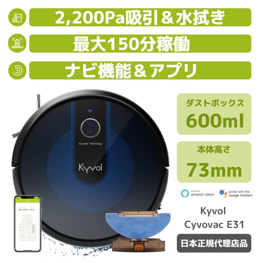 kyvol cybovac e31 黒 掃除機 モッピング ロボット掃除機 2200pa スマートマッピング付き 300ml水タンク 150分ランタイム 2272 000595 tohasen store 通販 yahoo ショッピング