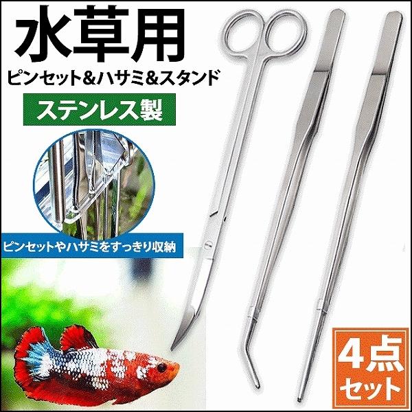 水草 トリミング アクアリウム ハサミ 水槽 メンテナンス セット 熱帯魚 ホルダー ピンセット 27cm はさみ 25cm スタンド付 ハーバリウム お手入れ 4点セット
