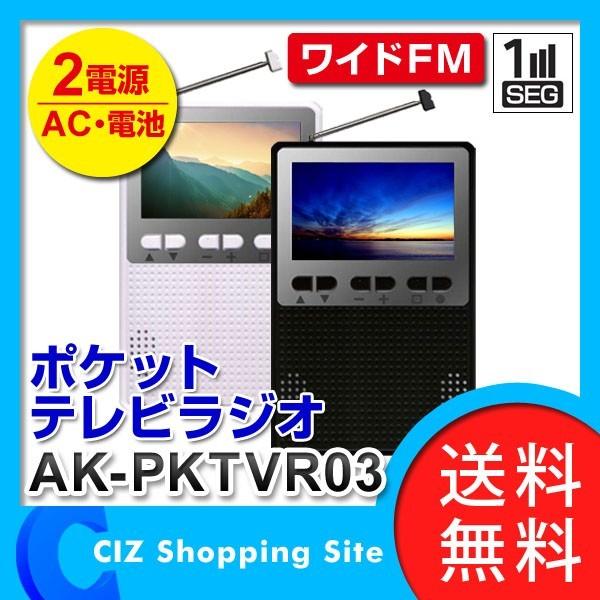 テレビ付きラジオ ワンセグ コンパクト 携帯 ポケットテレビラジオ 乾電池式 コンセント 3インチ am fm ラジオ イヤホン ak pktvr03 送料無料