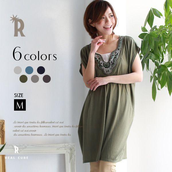 特別価格 real cube 日本製 バイカラーチュニックワンピース t32140906