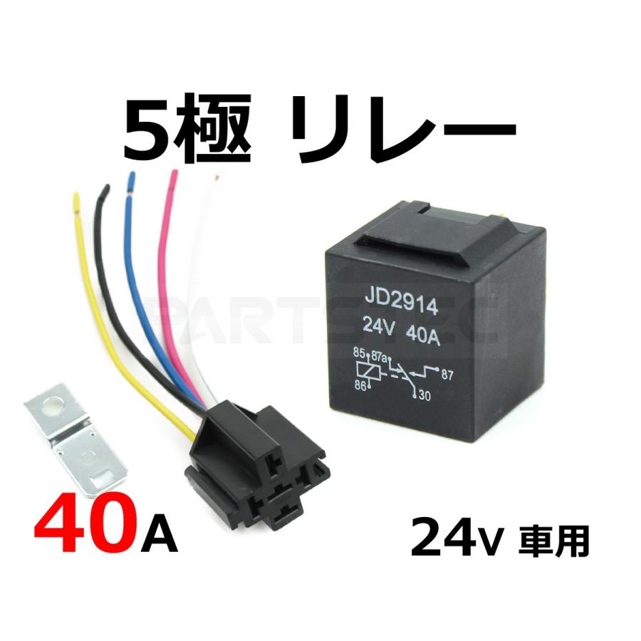 24v 専用 40a 5極リレー 大容量 c接点 1個 汎用トラック ダンプ バス トレーラー 電装品 デイライト フォグランプ 後付 カプラー 93 190 93 190 partstec yahoo 店 通販 yahoo ショッピング