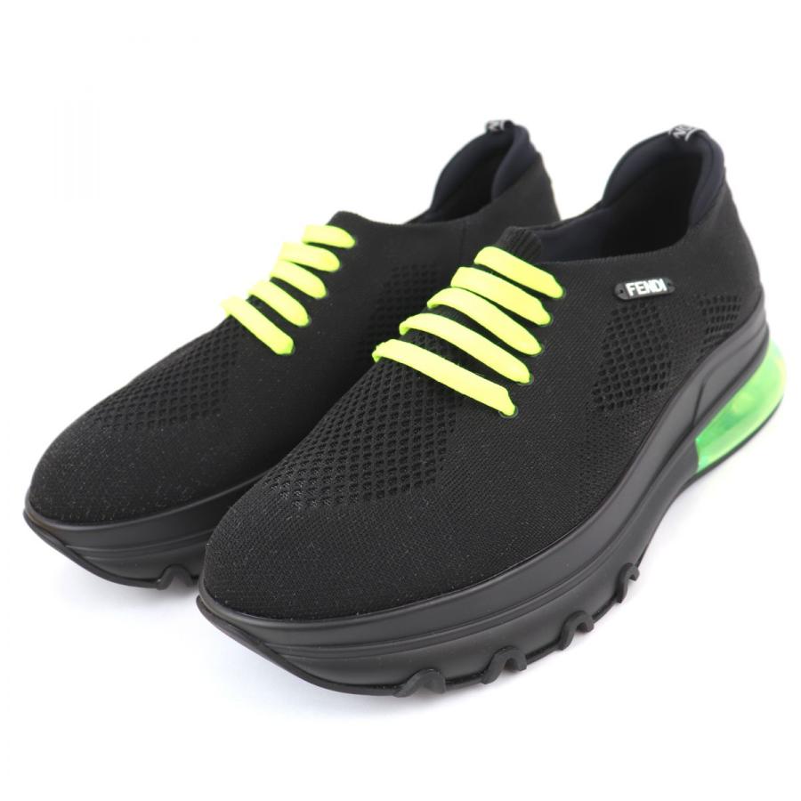 フェンディ ニットスリッポン スニーカー メンズ 10 黒 ネオンイエロー 未使用 シューズ エアーソール ロゴ fendi s3 12180 12180 オパールヤフーショッピング店 通販 yahoo ショッピング