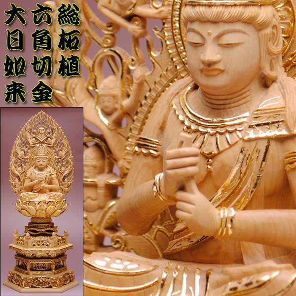 仏像 総檜六角飛天光背 大日如来2 0寸 真言宗 仏壇用御本尊 送料無料