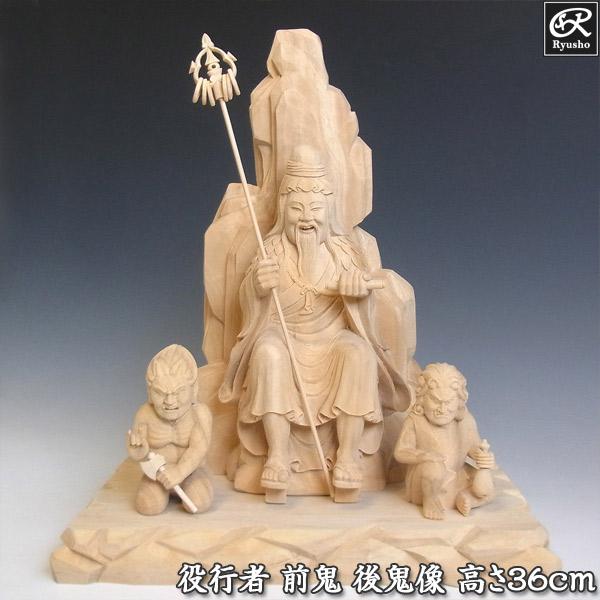 木彫り 仏像 役行者像 前鬼 後鬼 セット 高さ35cm 楠製 役小角