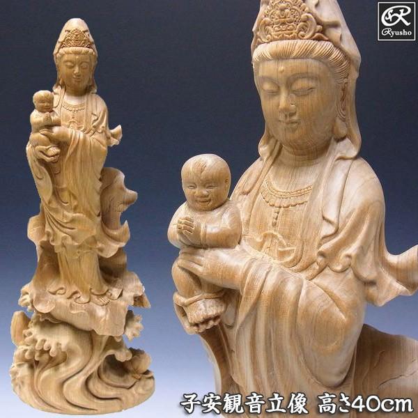 木彫り 仏像 子安観音 高さ40cm 台湾桧製 観音菩薩