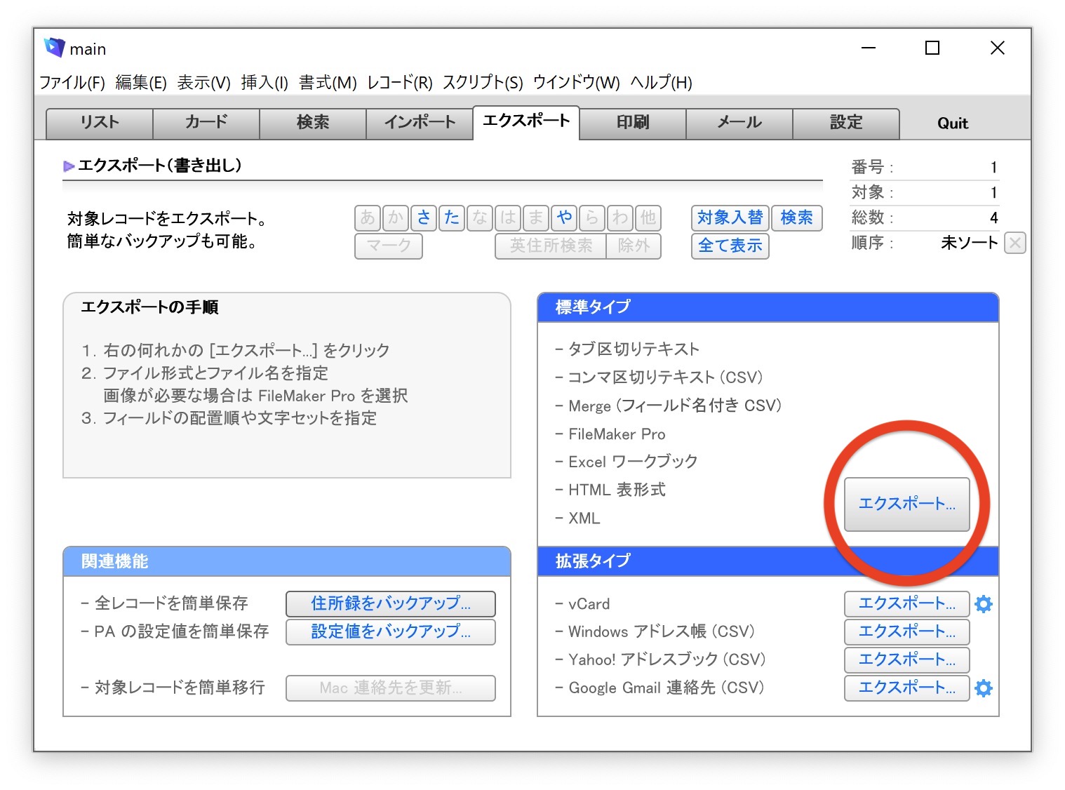 yahoo メールから連絡先をエクスポート