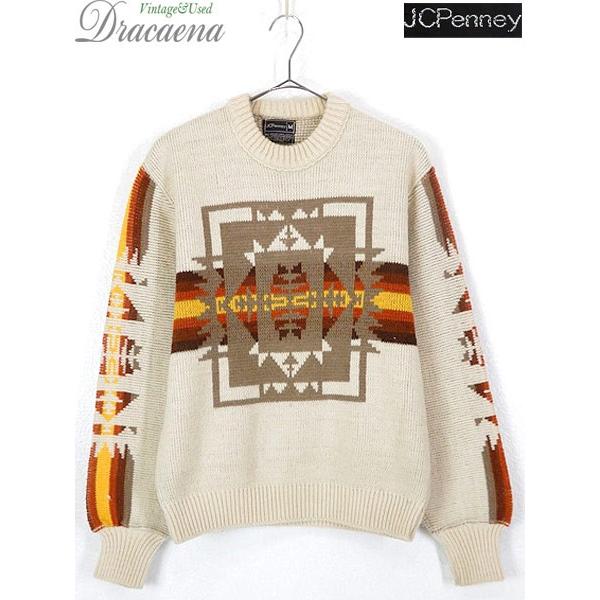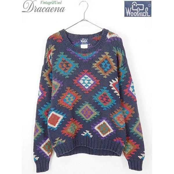 古着 ニット 90s woolrich カラフル ネイティヴ チマヨ 総柄 コットン ラミー ニット セーター xl位 古着