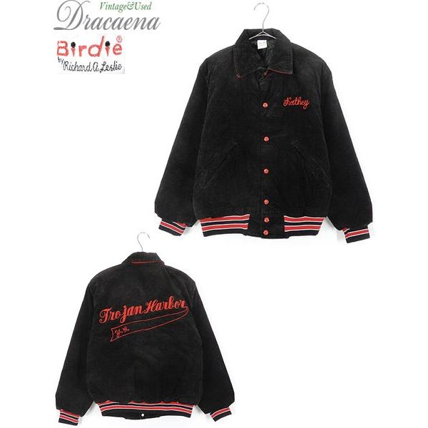 古着 ジャケット 70s usa製 birdie チェーン 刺しゅう オールド コーデュロイ スタジャン 中綿 黒 s 古着