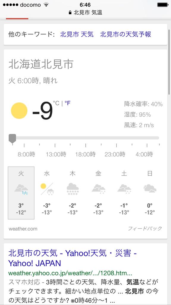 月刊qun きゅん 編集部 北見の生活情報誌 on twitter 年末年始の北見 寒すぎでは 画像はyahoo 天気さんから