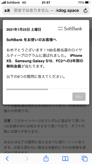 このサイトは安全ではないため閉じてください スマホ