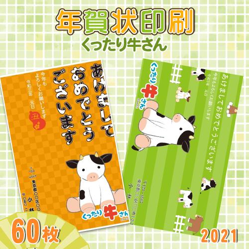 年賀状印刷 くったり牛さん 60枚 年賀はがき 2021 令和三年 丑年 選べる枚数 差出人印刷自由 年賀状印刷 お年玉付き 校正無料 年賀状60枚 くったり牛さん wz ngj ktrus60 2021 印道館 通販 yahoo ショッピング