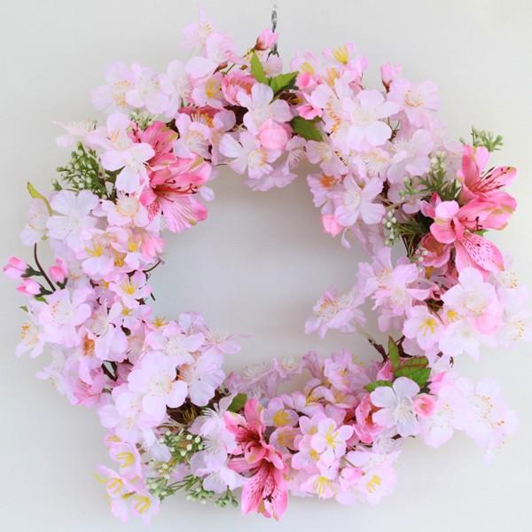 桜 造花 桜とアルストロメリアのリース さくら シルクフラワー ct触媒