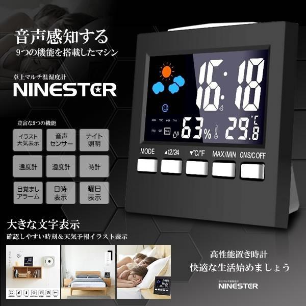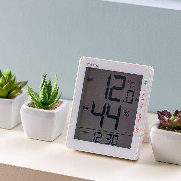デジタル温湿度計 天気 気温 温度計 湿度計 時計 アラーム 温度 測定器 卓上 スタンド フック穴 単4 おしゃれ うるおいチェックに