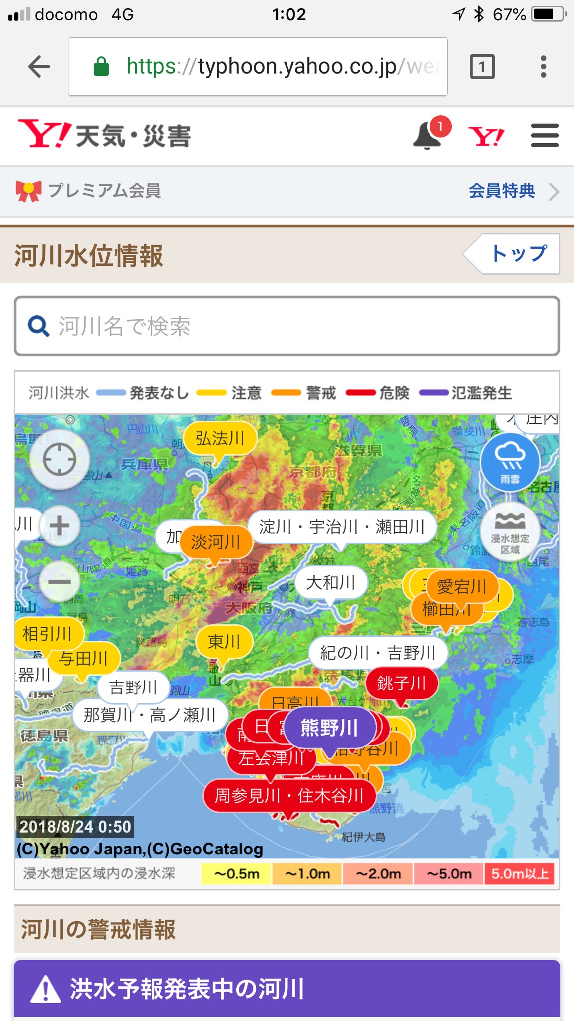 台風が来た時は yahoo 河川水位情報 がめちゃわかりやすいのでオススメ ドボク屋ysjkのライフメモ