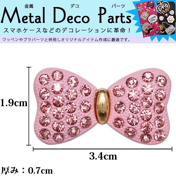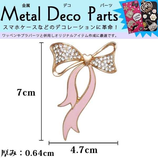 デコパーツ 金属パーツ 縦7cm 横4 7cm リボン ピンク ラインストーン iphoneケースや色々の物をデコレーション メール便