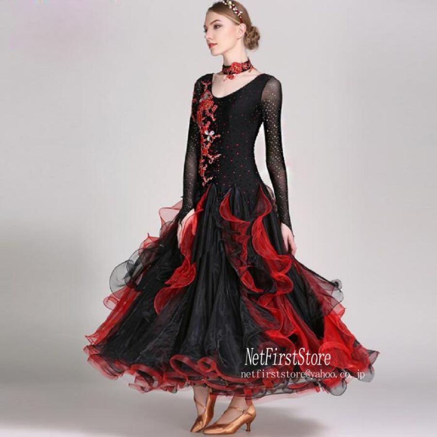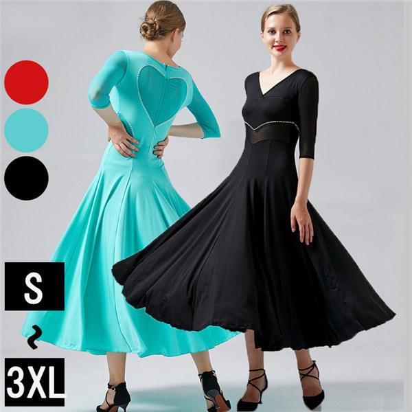 2018 社交ダンス 衣装 モダンドレス ラテンドレス 赤 黒 ラテン衣装 ブルー 社交ダンスドレス 大きい裾 ダンス衣装 ワンピース s 2xl ダンス衣装 ダンス発表会