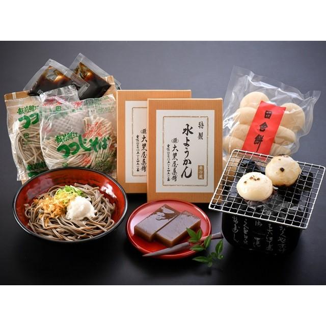 ふるさと福井の詰め合せ つつじ蕎麦2人前 つゆ付属 水ようかん小2パック 丸もち1袋 10個入 soba mizu1 御菓子司 大黒屋 ヤフー店 通販 yahoo ショッピング