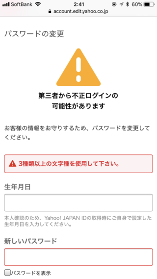 yahoo japan id流出で秘密の質問と答えの再設定が必要に