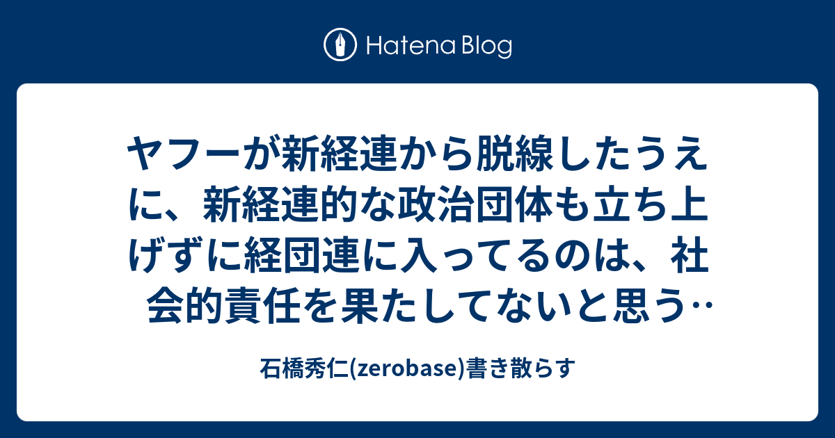ヤフーが新経連から脱線したうえに 新経連的な政治団体も立ち上げずに経団連に入ってるのは 社会的責任を果たしてないと思う 追記 政策提言団体 は先日立ち上げていた けど 懸念点も 石橋秀仁 zerobase 書き散らす