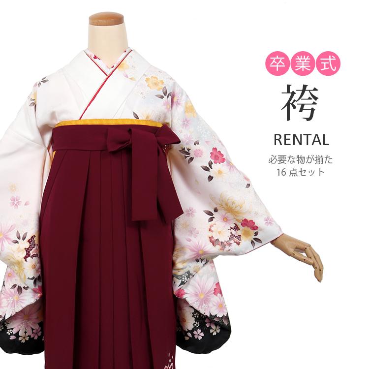 袴 レンタル 卒業式 女 2尺袖着物 袴 フルセットレンタル 白地にピンク 紫の桜と梅 流水 re h ky0110 なでしこレンタル 通販 yahoo ショッピング