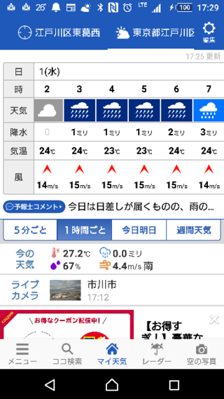 7月1日の江戸川区の天気予報です 午前3時 6時 雨量自体は1ミリ2 yahoo 知恵袋