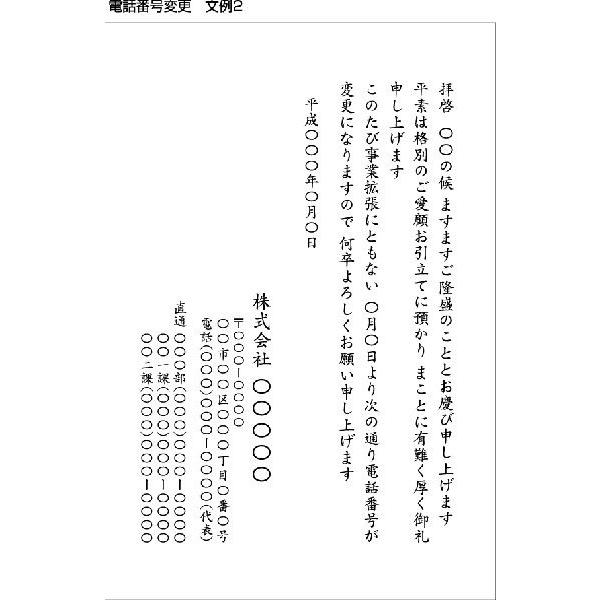 電話番号変更 文例2 印刷代込み 洋形2号封筒 単カード 100枚
