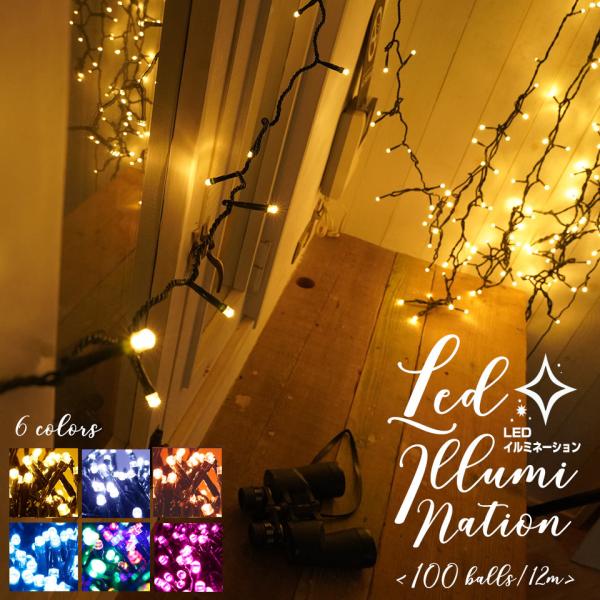 led ソーラーイルミネーション led100球 8パターン切替え 全長約12m ホワイト ゴールド ブルー ピンク パープル グリーン