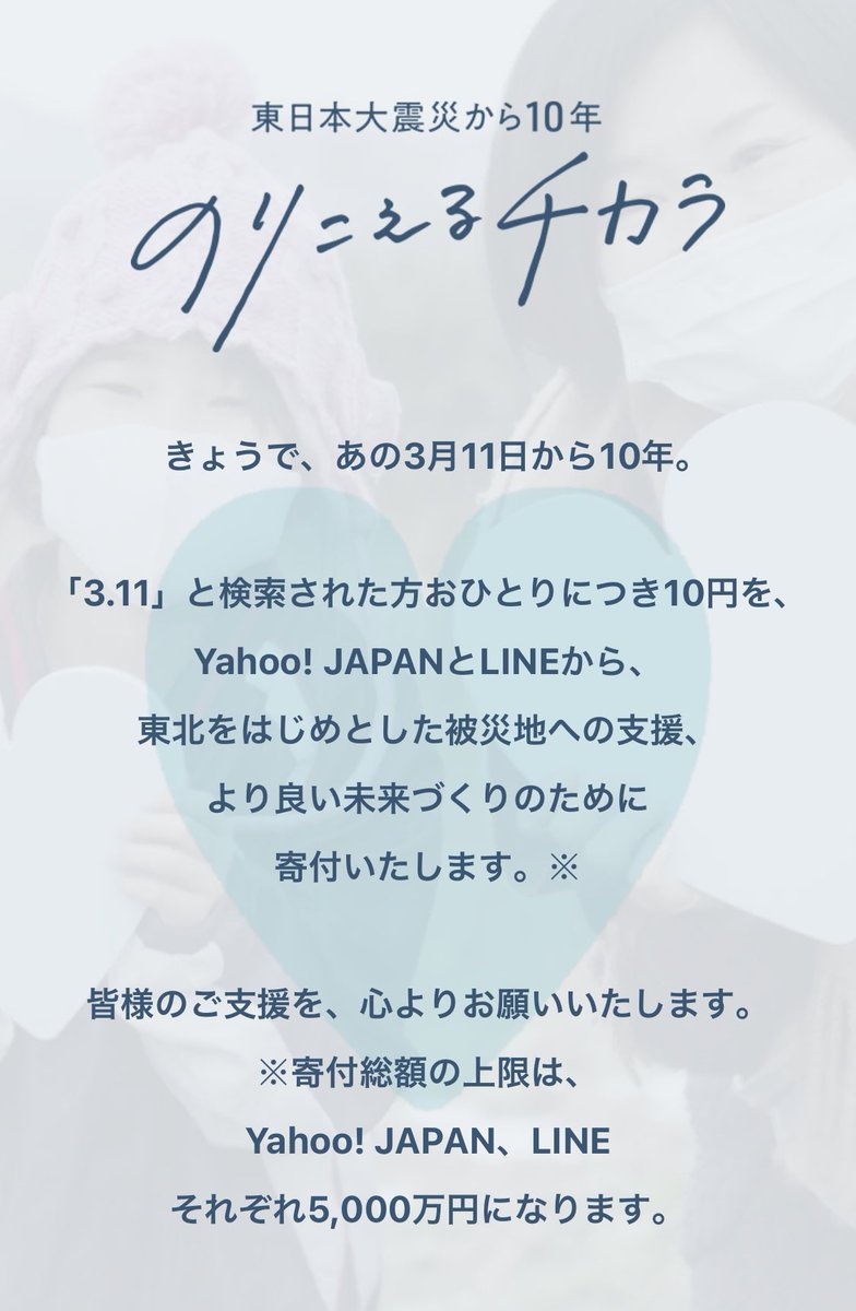 3 11 と検索すると ヤフーがユーザーに代わって10円寄付する復興支援を今年も 昨年寄付実績は2 900万円超 ネタとぴ