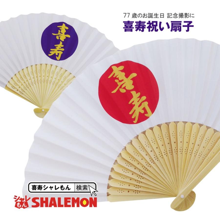 喜寿 お祝い プレゼント 扇子 父 母 77歳 選べる2色 喜寿 白扇子 日の丸部分 紫or赤 おじいちゃん おばあちゃん sensu2c kijyu シャレもんヤフーショッピング店 通販 yahoo ショッピング