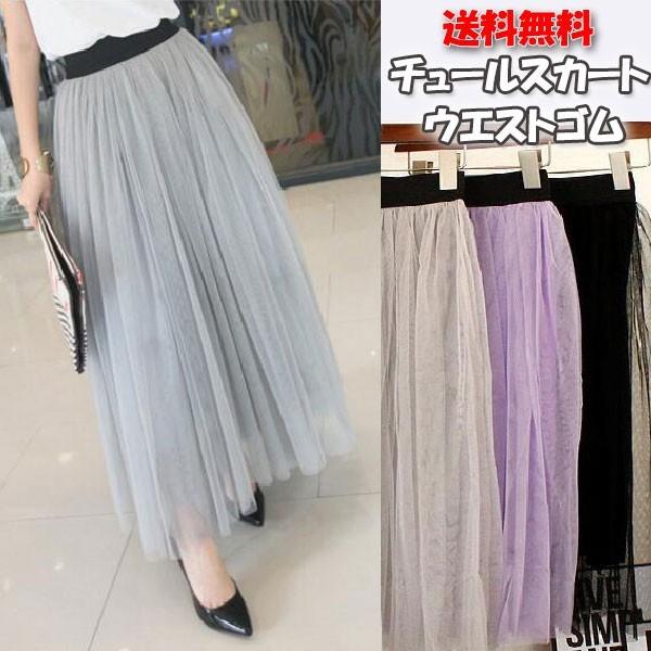 チュールスカート ロング マキシスカート ウエストゴム フレアスカート 春夏 ミモレ丈スカート白 グレー ロングスカート 黒 ネコポス可 1geyu 001 miniministore 通販 yahoo ショッピング