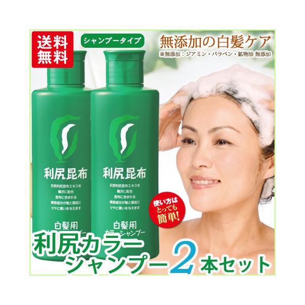 利尻カラーシャンプー2本セット シャンプーで白髪染め 27種類の植物エキスで髪 頭皮に優しい 利尻昆布エキス 利尻ヘアカラートリートメントとあわせ使い