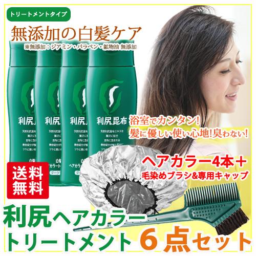 利尻ヘアカラートリートメント白髪染め6点セット 色は選べるヘアカラー4本 毛染めブラシ 専用キャップ mot0510 blondieblond 通販 yahoo ショッピング