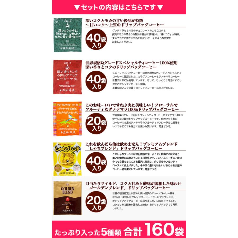ドリップコーヒー コーヒー 160杯 珈琲専門店のドリップバッグコーヒーセット 5種類 個包装 珈琲 送料無料 加藤珈琲