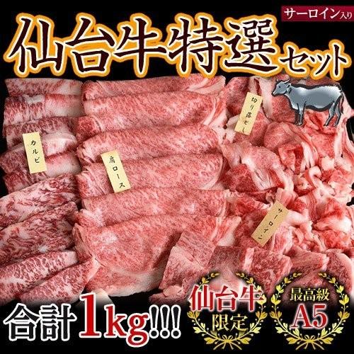 肉 牛肉 牛 すき焼き サーロイン 入り 最高級 a5 黒毛和牛 仙台牛 特選セット 4種 1キロ 内祝い プレゼント 送料無料 203z05608 豊洲からの直送便 ヤフー店 通販 yahoo ショッピング