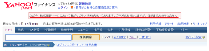ヤフーの金融情報サイト 株価更新されず 日本経済新聞