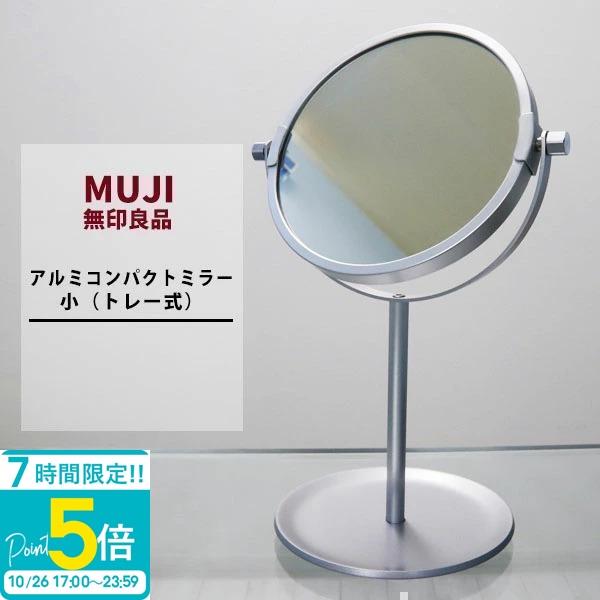 muji 無印良品 アルミコンパクトミラー 小 トレー式 拡大鏡付きミラー muji 鏡 ミラー 鏡 卓上 無印