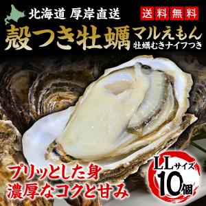 北海道 厚岸産 生牡蠣 まるえもん 殻付き 10個 lサイズ かき カキ 牡蠣 生食可 鍋 ギフト プレゼント用 内祝 送料無料