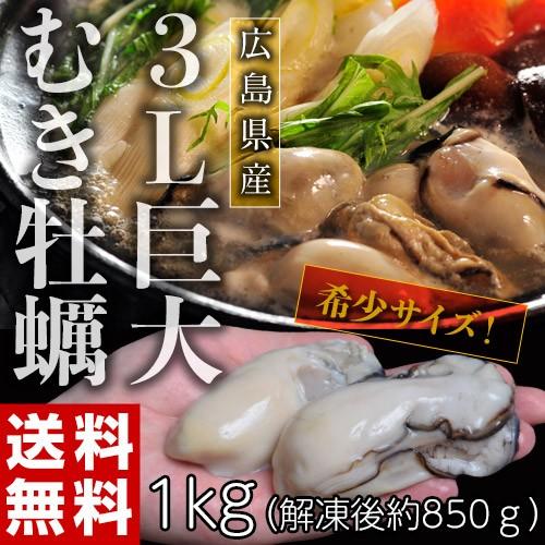 牡蠣 カキ かき 広島県産 ムキ牡蠣 超大粒 3lサイズ 1kg 解凍後 850g 加熱用 冷凍 送料無料 201z11692 豊洲からの直送便 ヤフー店 通販 yahoo ショッピング